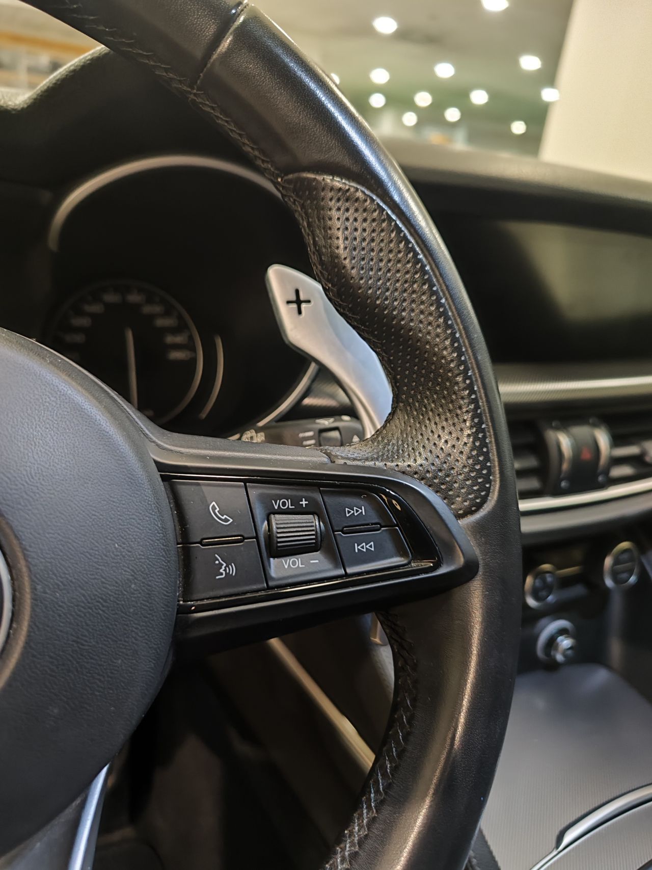 • Volante multi-función de aluminio y cuero ajustable en altura y en profundidad