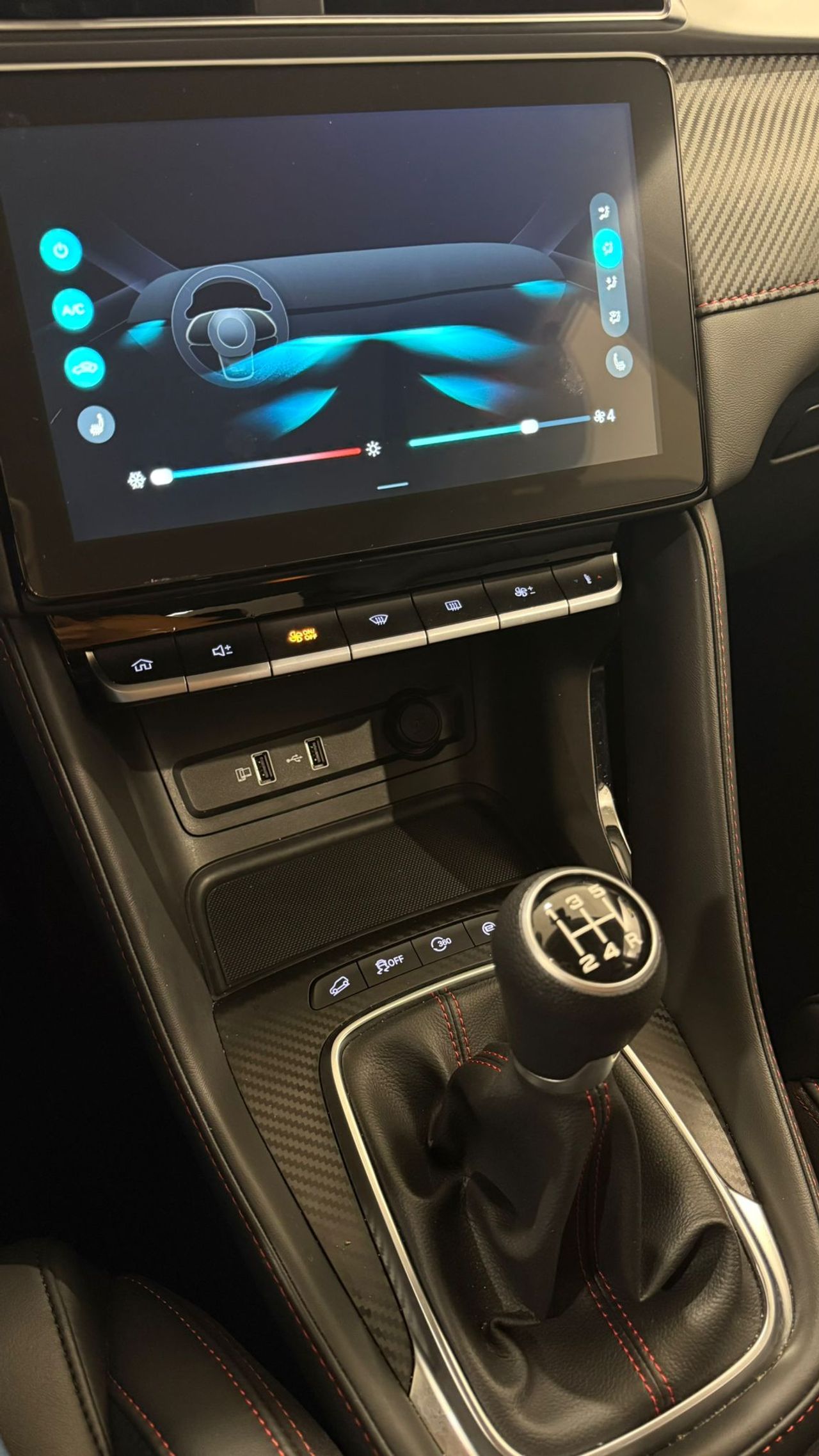 • Acabados de lujo: pomo de la palanca de cambios en símil aluminio, consola central en símil fibra de carbono, puertas en símil aluminio y tablero en símil aluminio
